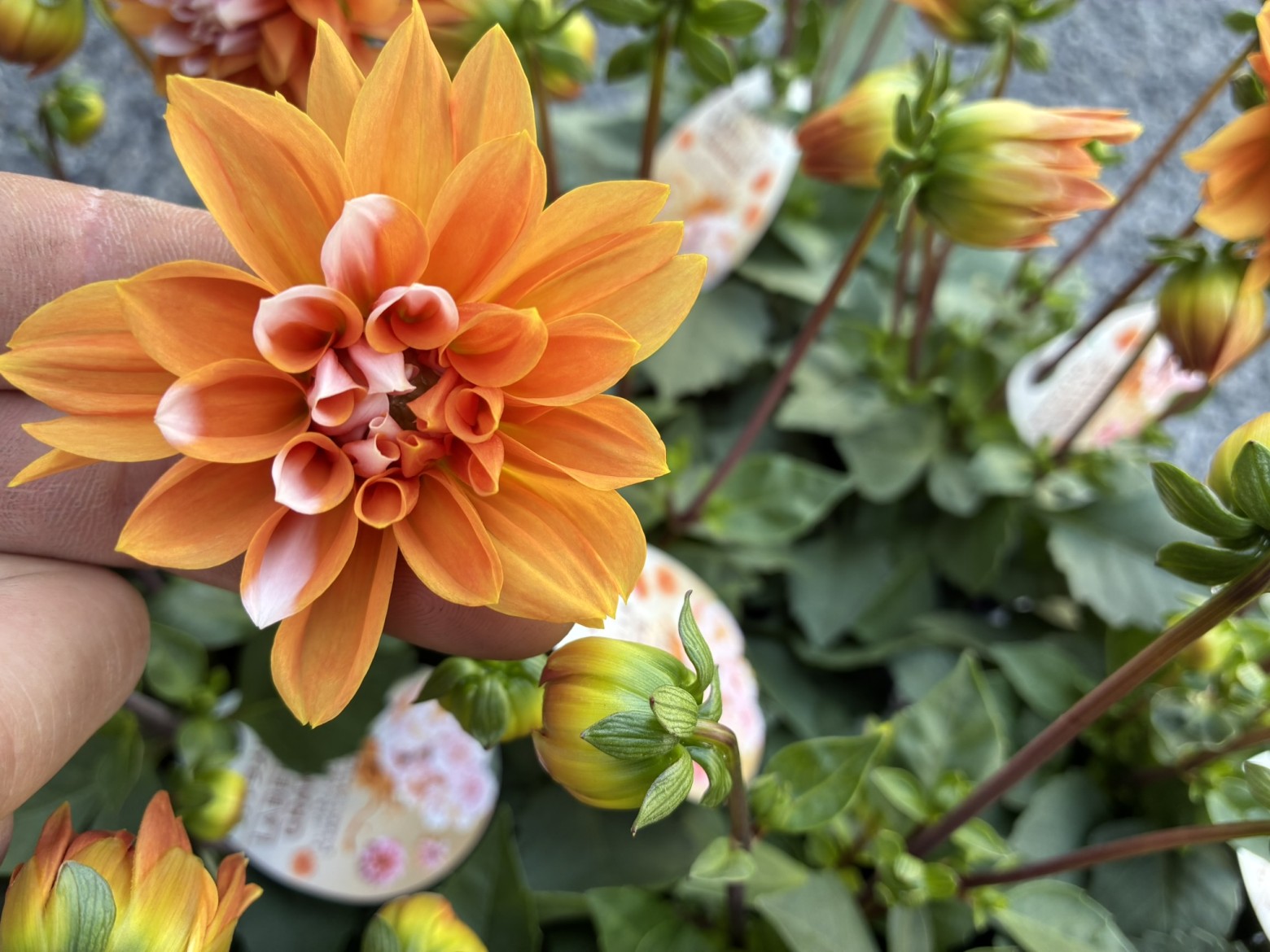 環境によっては、オレンジやホワイトの単色が咲くこともある、摩訶不思議なダリアです。