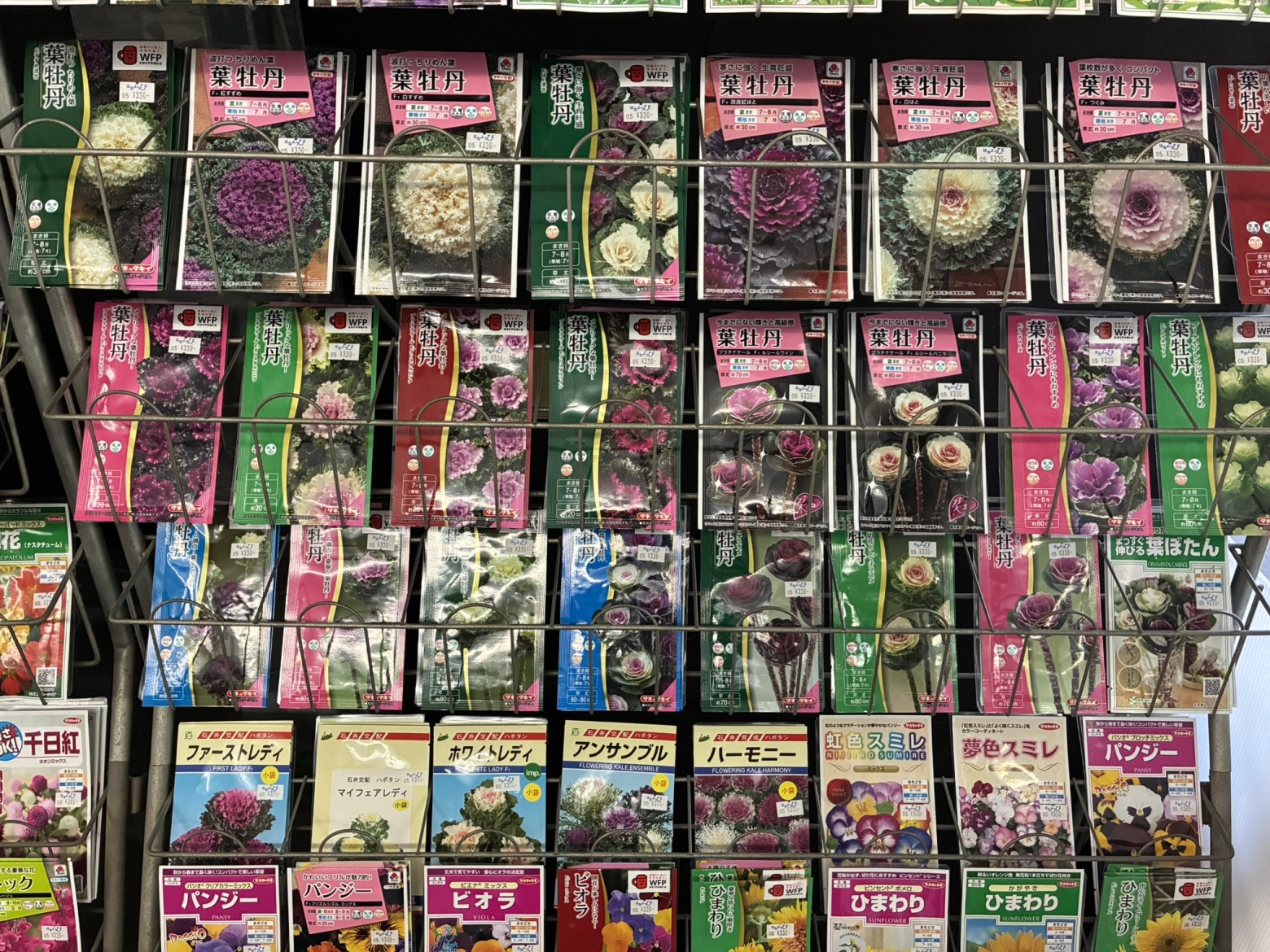 草花種子では、切花用途のキンセンカやストック、花壇用途のパンジー・ビオラや葉牡丹など多数揃えております。