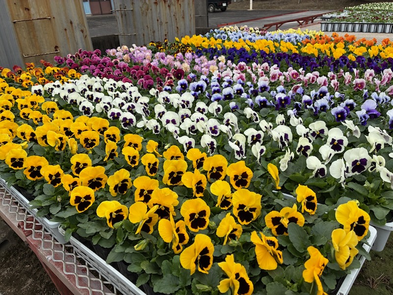 定番の9cmポット一般品種のパンジー・ビオラ、毎年大好評のはなようび厳選ビオラコレクションが店頭に並びました。