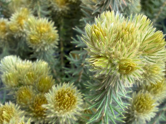 まだまだ流通が少ない珍しい品種で、ふわふわの羽が集まったような葉が特徴の、南アフリカ原産の花木です。